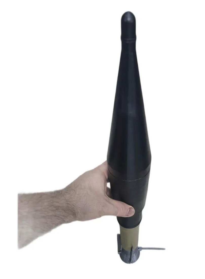 Учебный макет гранаты реактивного гранатомета РПГ26 изготовлен из пластика, в точности повторяет настоящую гранату. Возможно утяжелить макет например гипсом для придания массы приближенной к оригиналу. Об этом необходимо сообщить после заказа.